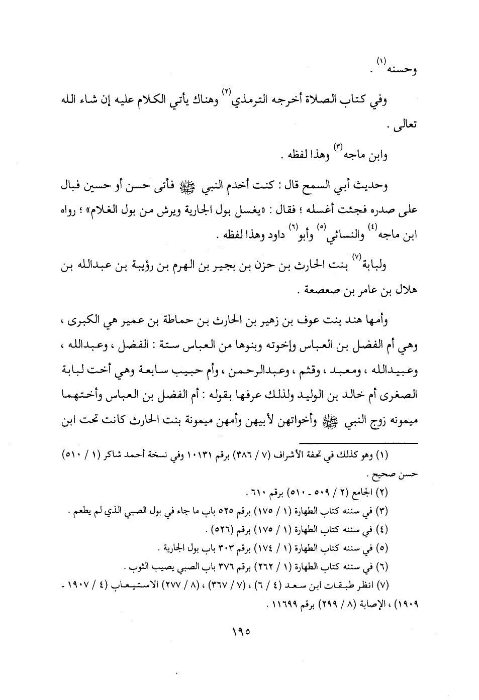 (¬6) في سننه كتاب الطهارة (1/ 262) برقم 376 باب الصبي يصيب الثوب.