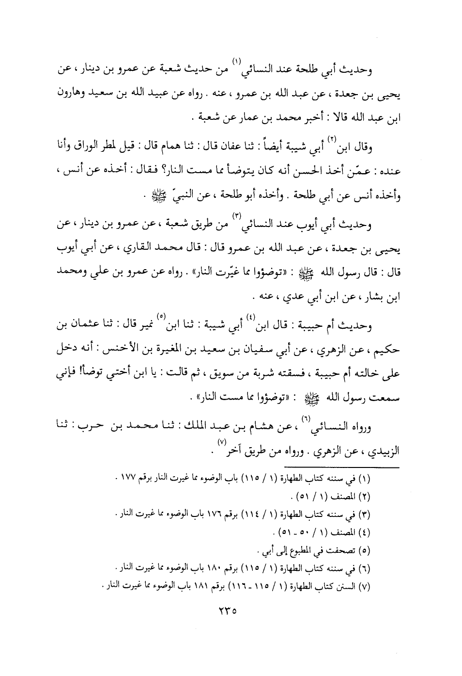 (¬7) السنن كتاب الطهارة (1/ 115 - 116) برقم 181 باب الوضوء مما غيرت النار.