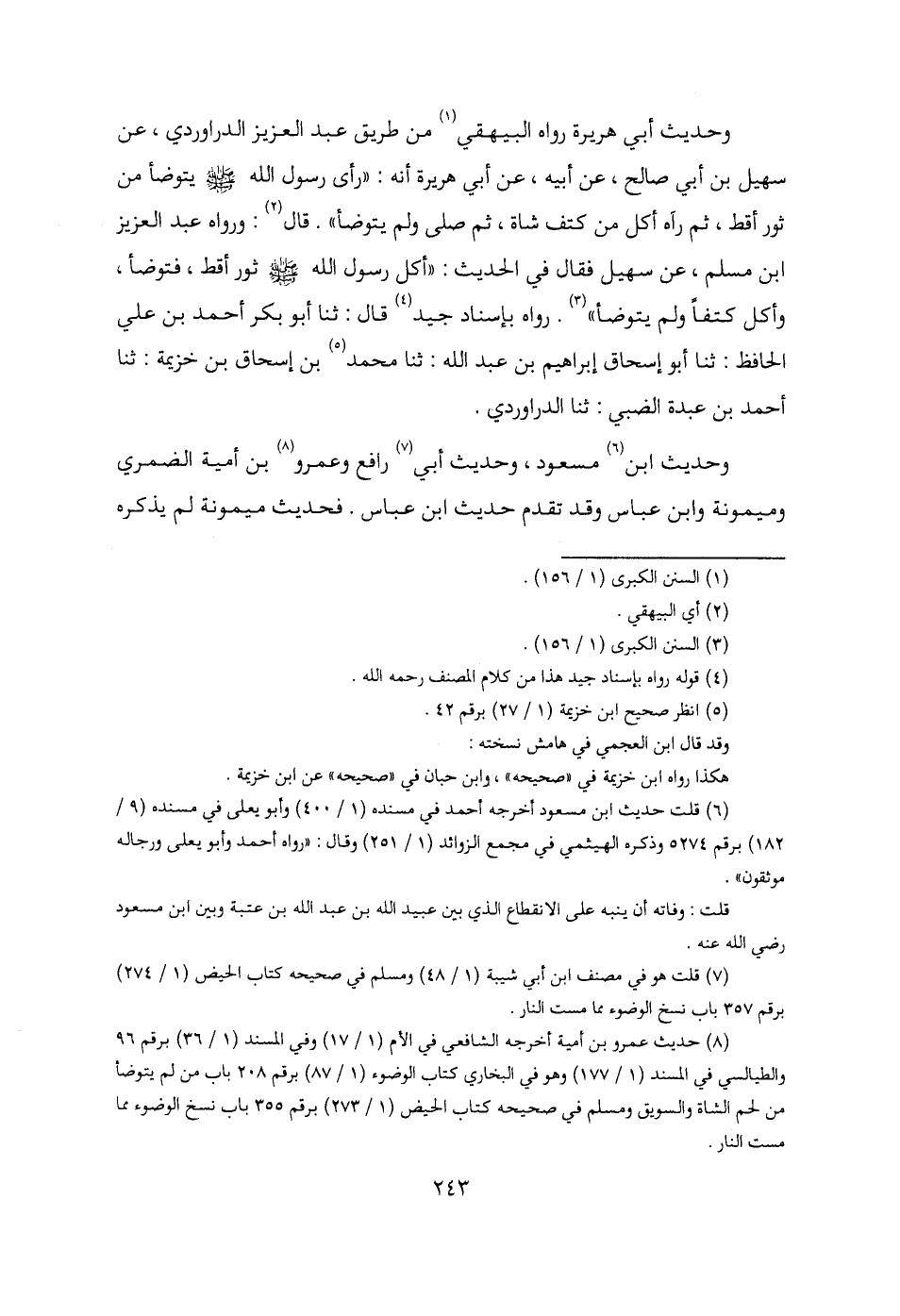 (¬7) قلت هو في مصنف ابن أبي شيبة (1/ 48) ومسلم في صحيحه كتاب الحيض (1/ 274) برقم 357 باب نسخ الوضوء مما مست النار.