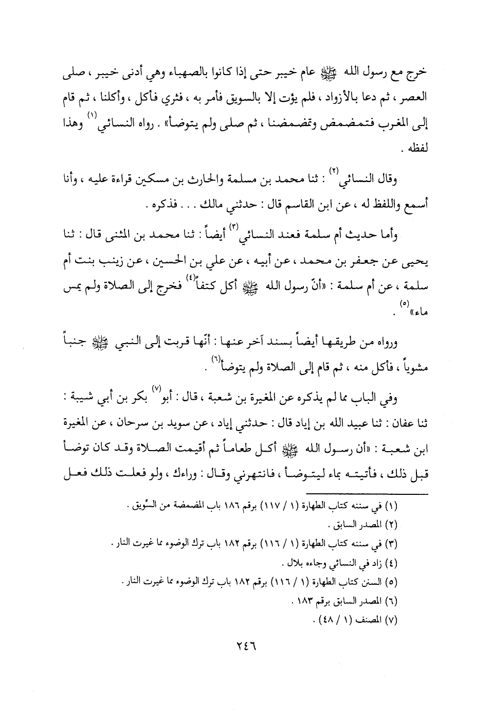(¬5) السنن كتاب الطهارة (1/ 116) برقم 182 باب ترك الوضوء مما غيرت النار.