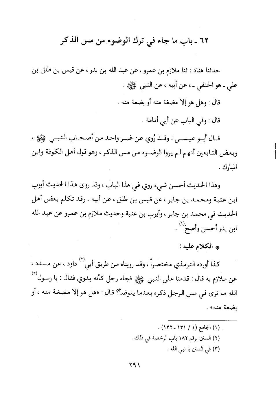 62 - باب ما جاء في ترك الوضوء من مس الذكر