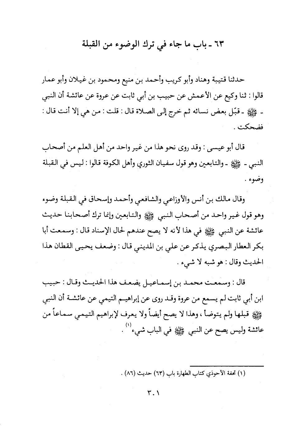(¬1) تحفة الأحوذي كتاب الطهارة باب (63) حديث (86).