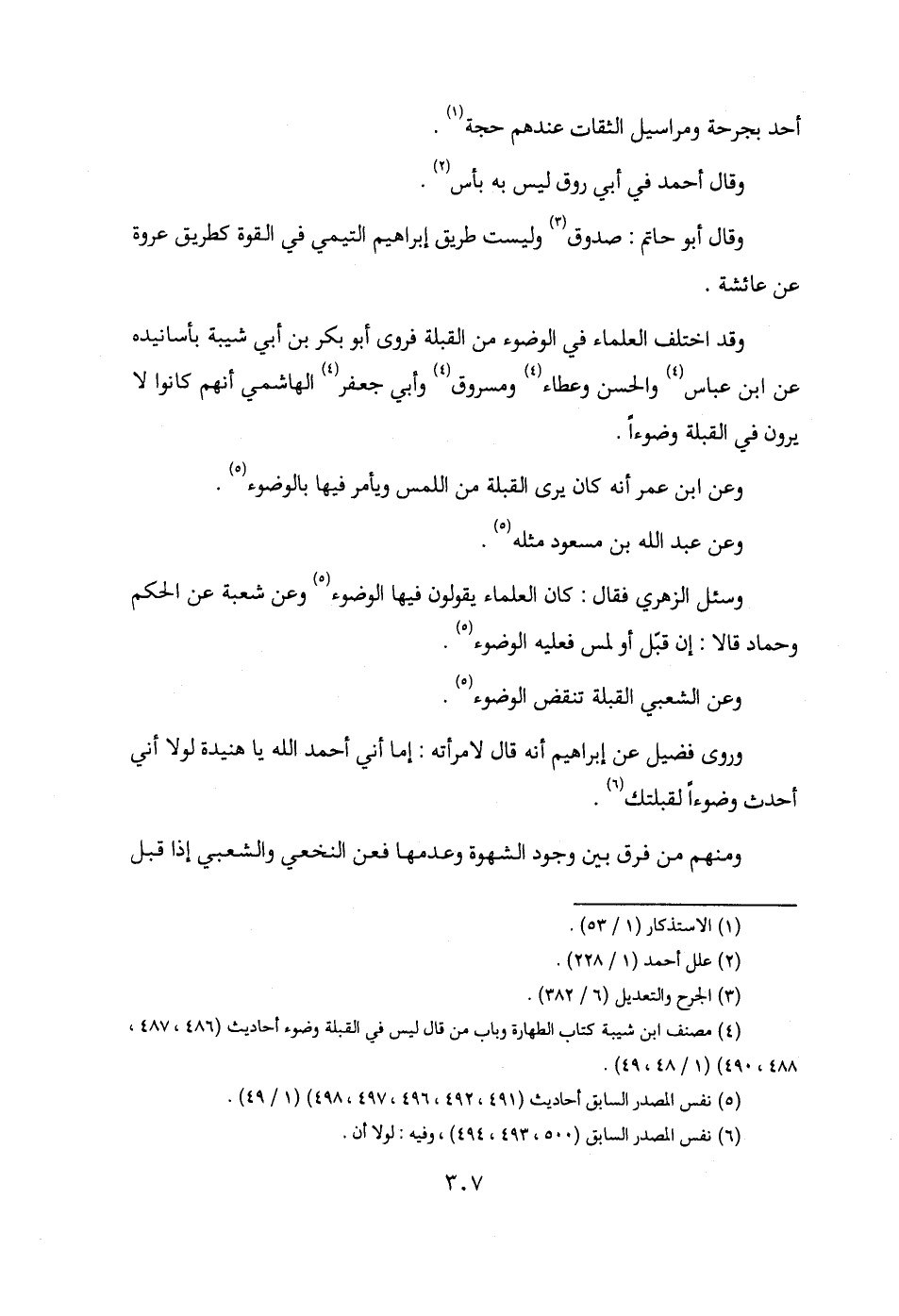 (¬4) مصنف ابن شيبة كتاب الطهارة وباب من قال ليس في القبلة وضوء أحاديث (486، 487، 488، 490) (1/ 48، 49).