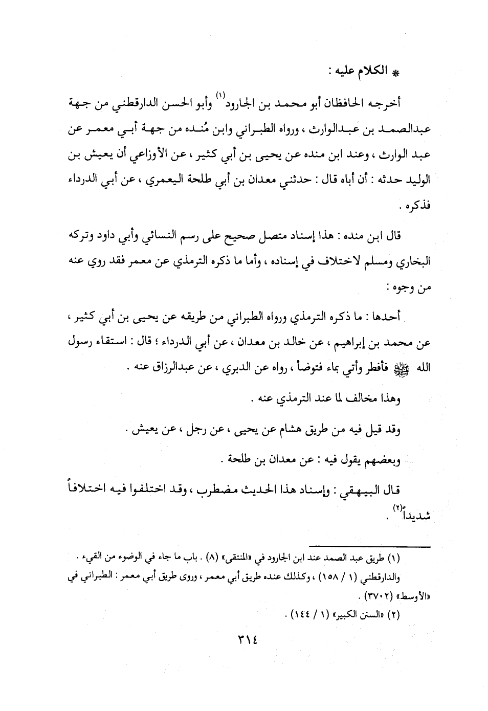 وبعضهم يقول فيه: عن معدان بن طلحة.