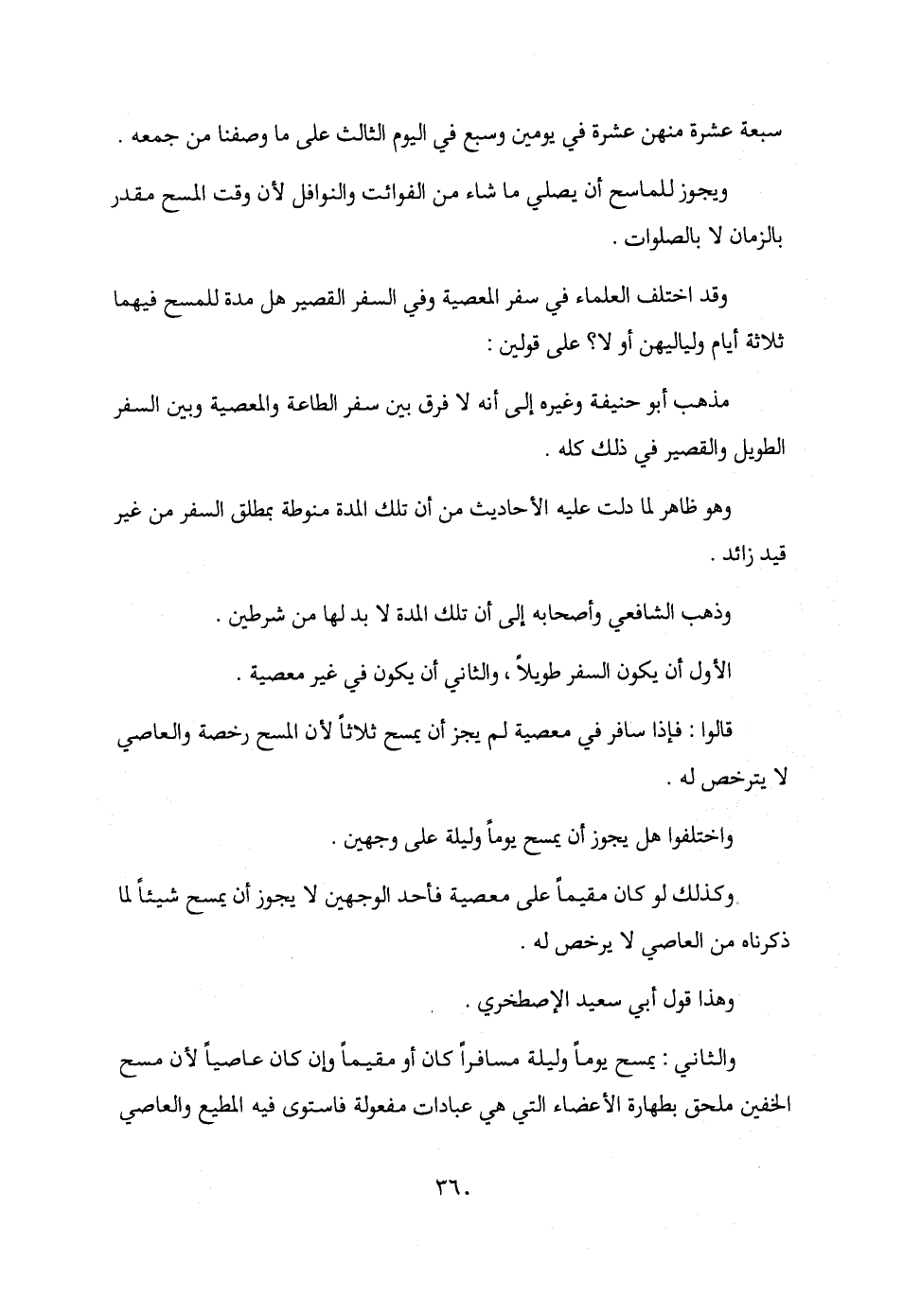 وقد اختلف العلماء في سفر المعصية وفي السفر القصير هل مدة للمسح فيهما ثلاثة أيام ولياليهن أو لا؟ على قولين: