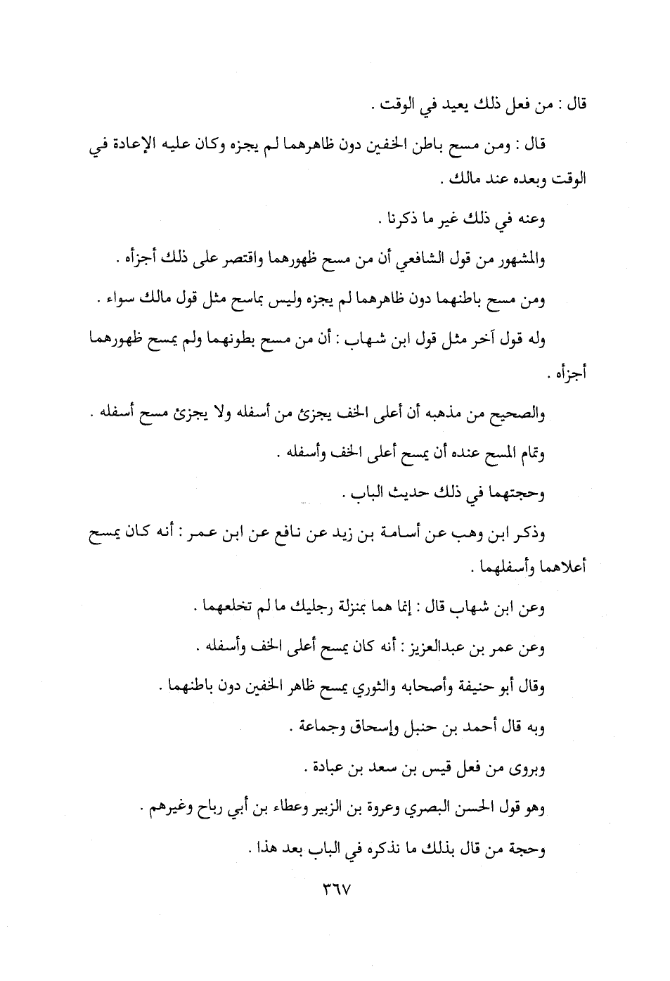 وله قول آخر مثل قول ابن شهاب: أن من مسح بطونهما ولم يمسح ظهورهما أجزأه.