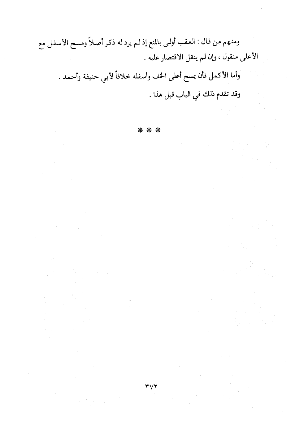 ومنهم من قال: العقب أولى بالمنع إذ لم يرد له ذكر أصلًا ومسح الأسفل مع الأعلى منقول، وإن لم ينقل الاقتصار عليه.