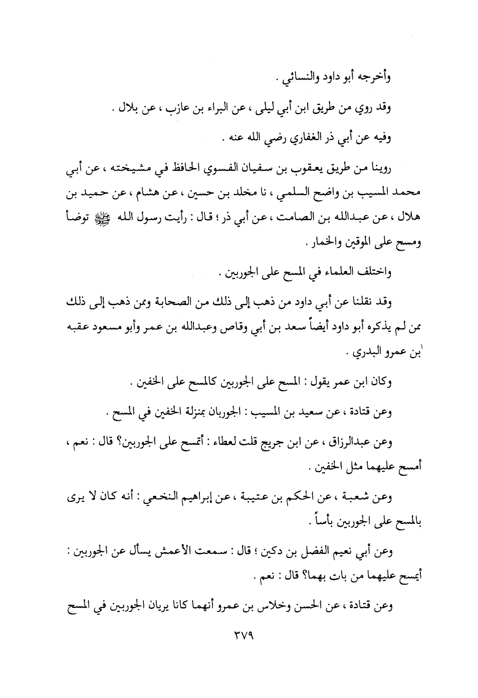 وعن أبي نعيم الفضل بن دكين، قال: سمعت الأعمش يسأل عن الجوربين: أيمسح عليهما من بات بهما؟ قال: نعم.