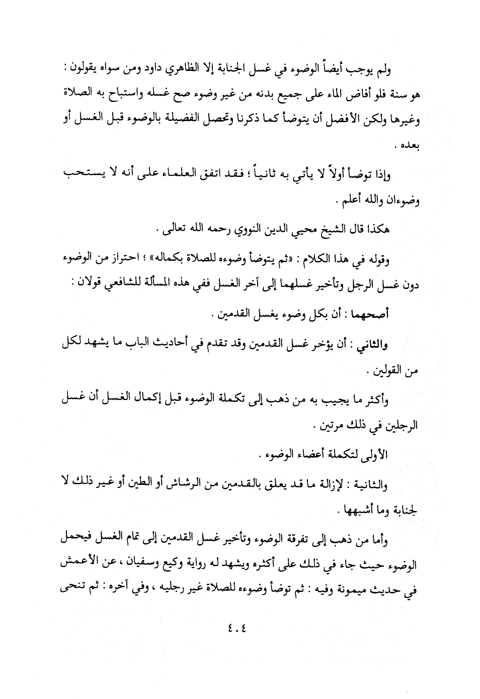 والثاني: أن يؤخر غسل القدمين وقد تقدم في أحاديث الباب ما يشهد لكل من القولين.