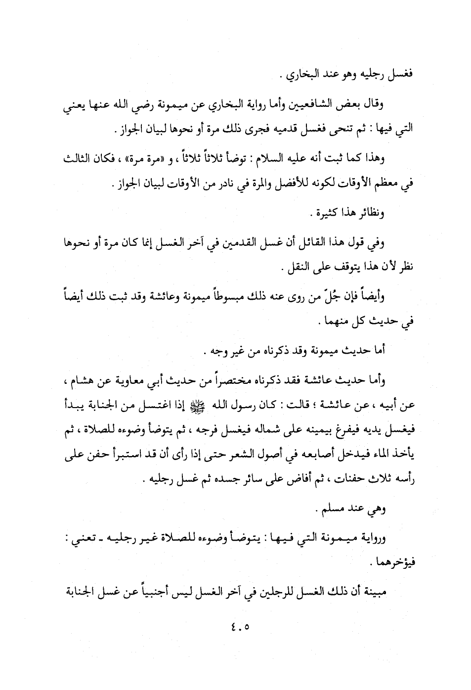 وقال بعض الشافعيين وأما رواية البخاري عن ميمونة رضي الله عنها يعني التي فيها: ثم تنحى فغسل قدميه فجرى ذلك مرة أو نحوها لبيان الجواز.