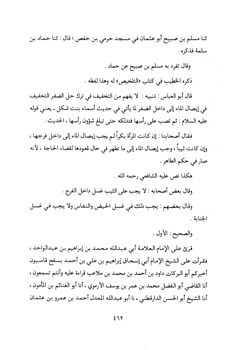 قرئ على الإمام العلامة أبي عبد الله محمد بن إبراهيم بن عبد الواحد، فقرأت على الشيخ الإمام أبي إسحاق إبراهيم بن علي بن أحمد بسفح قاسيون أخبركم أبو البركات داود بن أحمد بن محمد بن ملاعب قراءة عليه وأنتم تسمعون، أنا القاضي أبو الفضل محمد بن عمر بن يوسف الأرموي، أنا أبو الغنائم بن المأمون، أنا الشيخ أبو الحسنن الدارقطني، نا أبو عبد الله المعدل أحمد بن عمرو بن عثمان