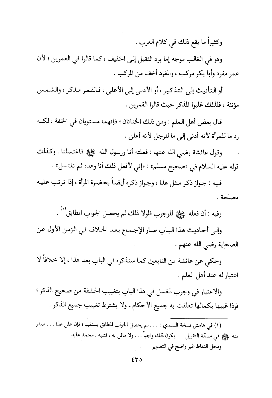 (¬1) في هامش نسخة السندي: ... لم يحصل الجواب المطابق يستقيم؛ فإن علل هذا ... صدر منه - صلى الله عليه وسلم - في مسألة التقبيل ... يكون ذلك واجبًا ... ولا ماثل به، فتنبه. محمد عابد.