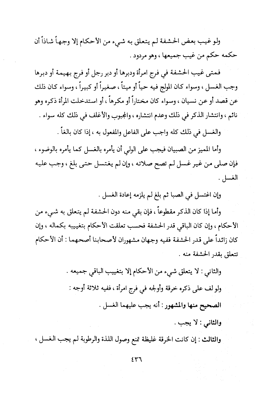 ولو غيب بعض الحشفة لم يتعلق به شيء من الأحكام إلا وجهًا شاذًا أن حكمه حكم من غيب جميعها، وهو مردود.