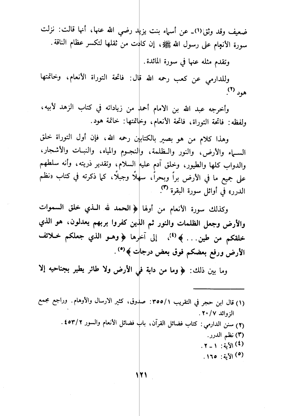 سورة الأنعام على رسول الله - صلى الله عليه وسلم -، إن كادت من ثقلها لتكسر عظام الناقة
