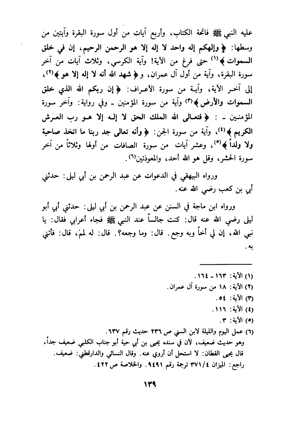 ورواه البيهقي في الدعوات عن عبد الرحمن بن أبي ليلى: حدثني