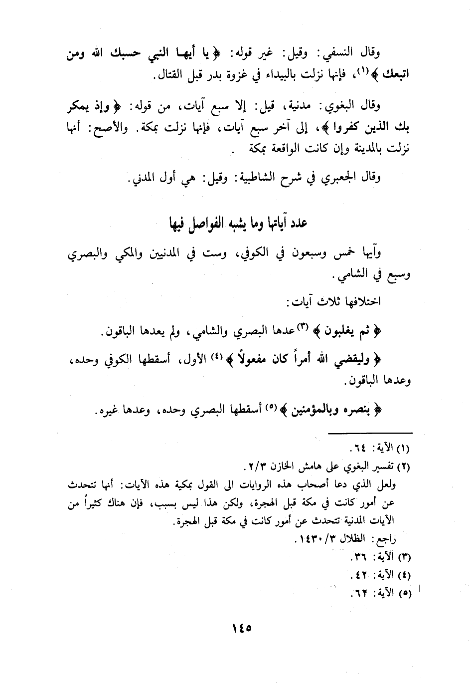 وقال النسفي: وقيل: غير قوله: (يَا أَيُّهَا النَّبِيُّ حَسْبُكَ اللَّهُ وَمَنِ اتَّبَعَكَ) ، فإنها نزلت بالبيداء في غزوة بدر قبل القتال.