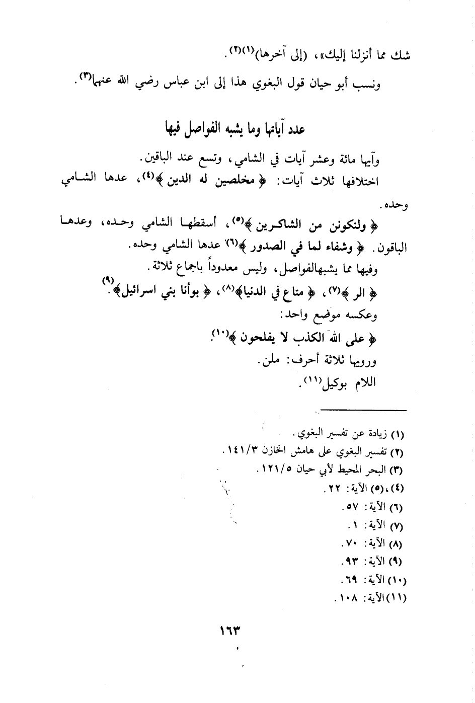 وفيها مما يشبه الفواصل، وليس معدوداً بإجماع ثلاثة.