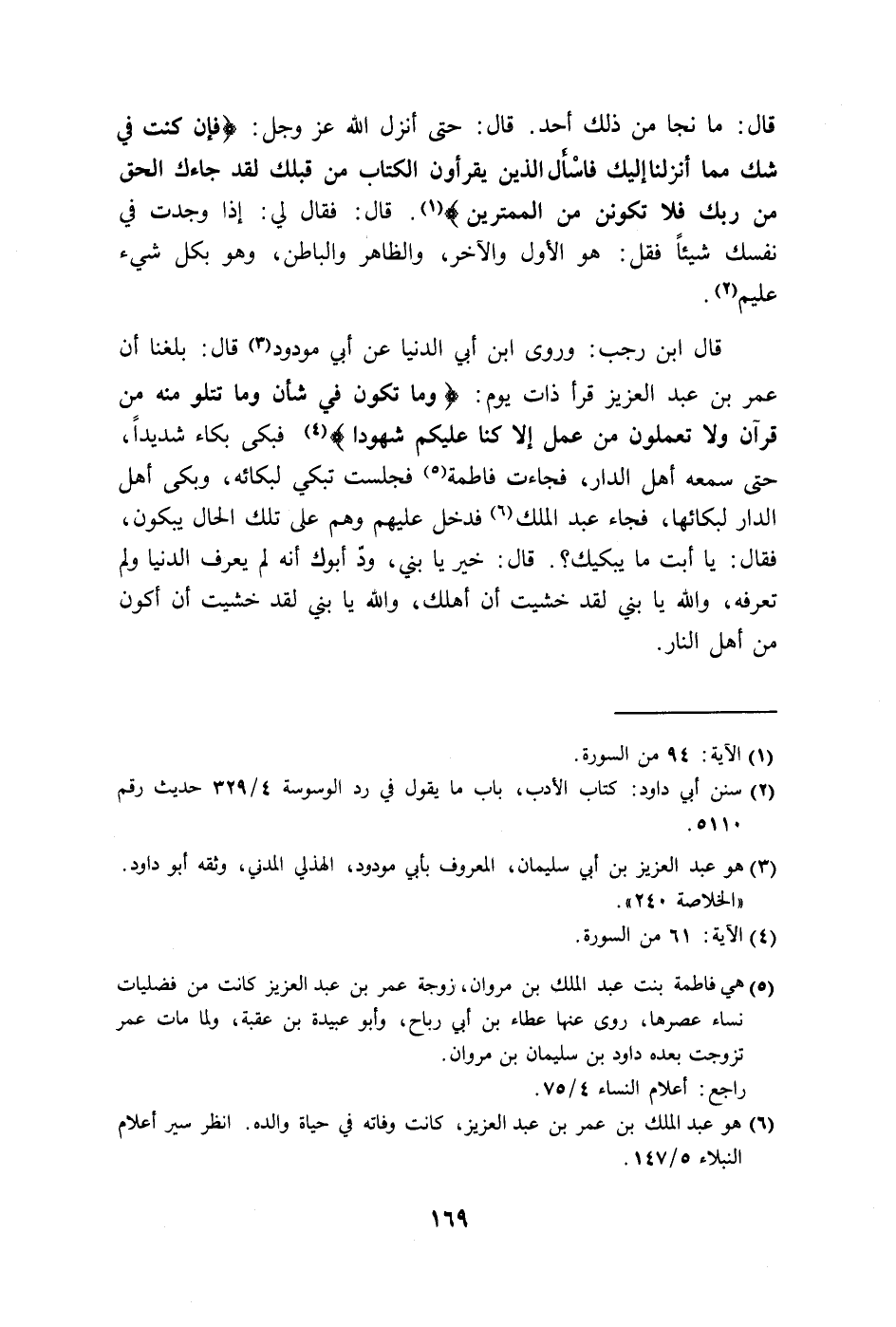 قال ابن رجب: وروى ابن أبي الدنيا عن أبي مودود قال: بلغنا أن