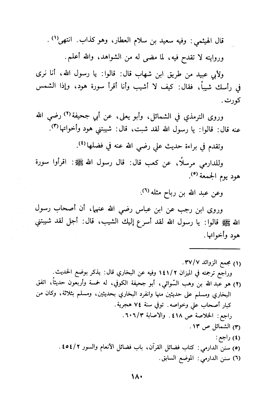 الله - صلى الله عليه وسلم - قالوا: يا رسول الله لقد أسرع إليك الشيب، قال: أجل لقد شيبتني هود وأخواتها.