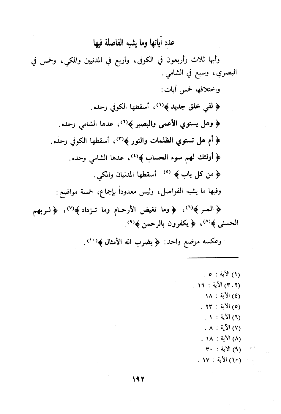 وفيها ما يشبه الفواصل، وليس معدوداً بإجماع، خمسة مواضع: