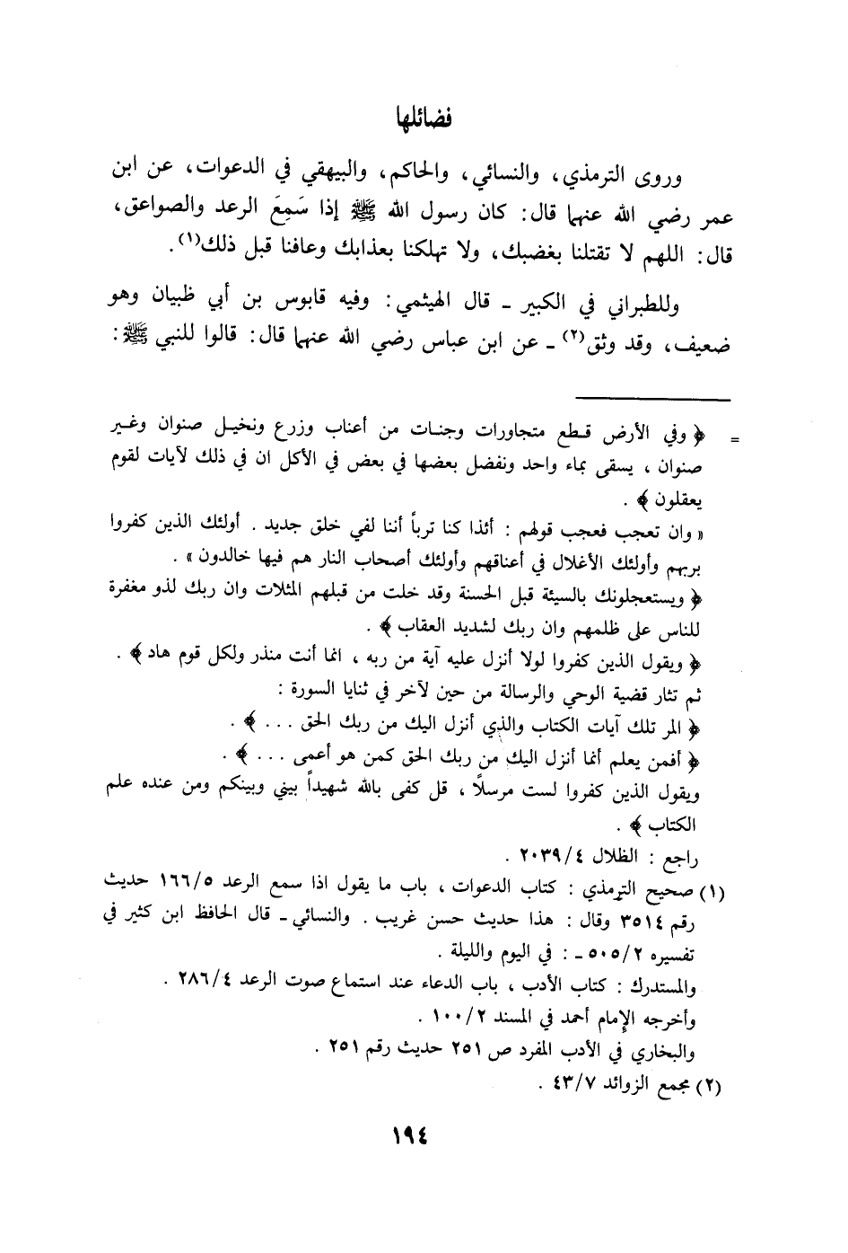 عمر رضي الله عنهما قال: كان رسول الله - صلى الله عليه وسلم - إذا سَمِعَ الرعد والصواعق، قال: اللهم لا تقتلنا بغضبك، ولا تهلكنا بعذابك وعافنا قبل ذلك.