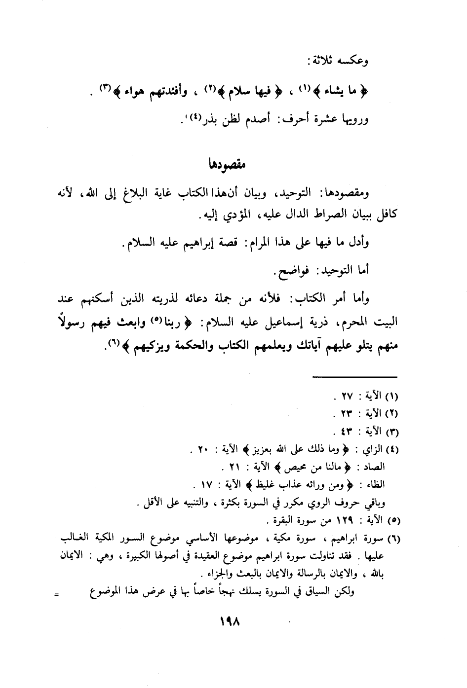 ومقصودها: التوحيد، وبيان أن هذا الكتاب غاية البلاع إلى الله، لأنه