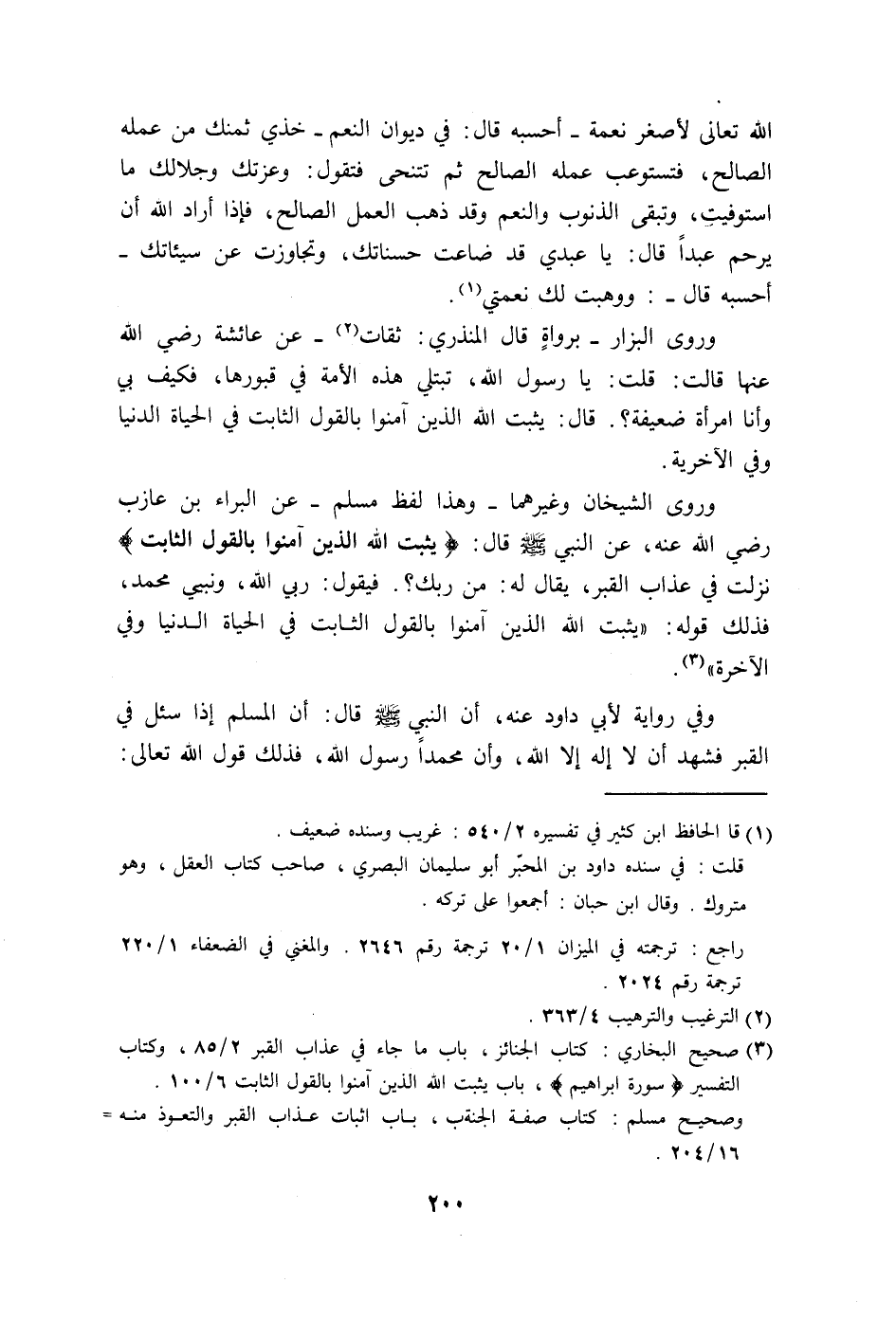 قال: (يُثَبِّتُ اللَّهُ الَّذِينَ آمَنُوا بِالْقَوْلِ الثَّابِتِ فِي الْحَيَاةِ الدُّنْيَا وَفِي الْآخِرَةِ) .