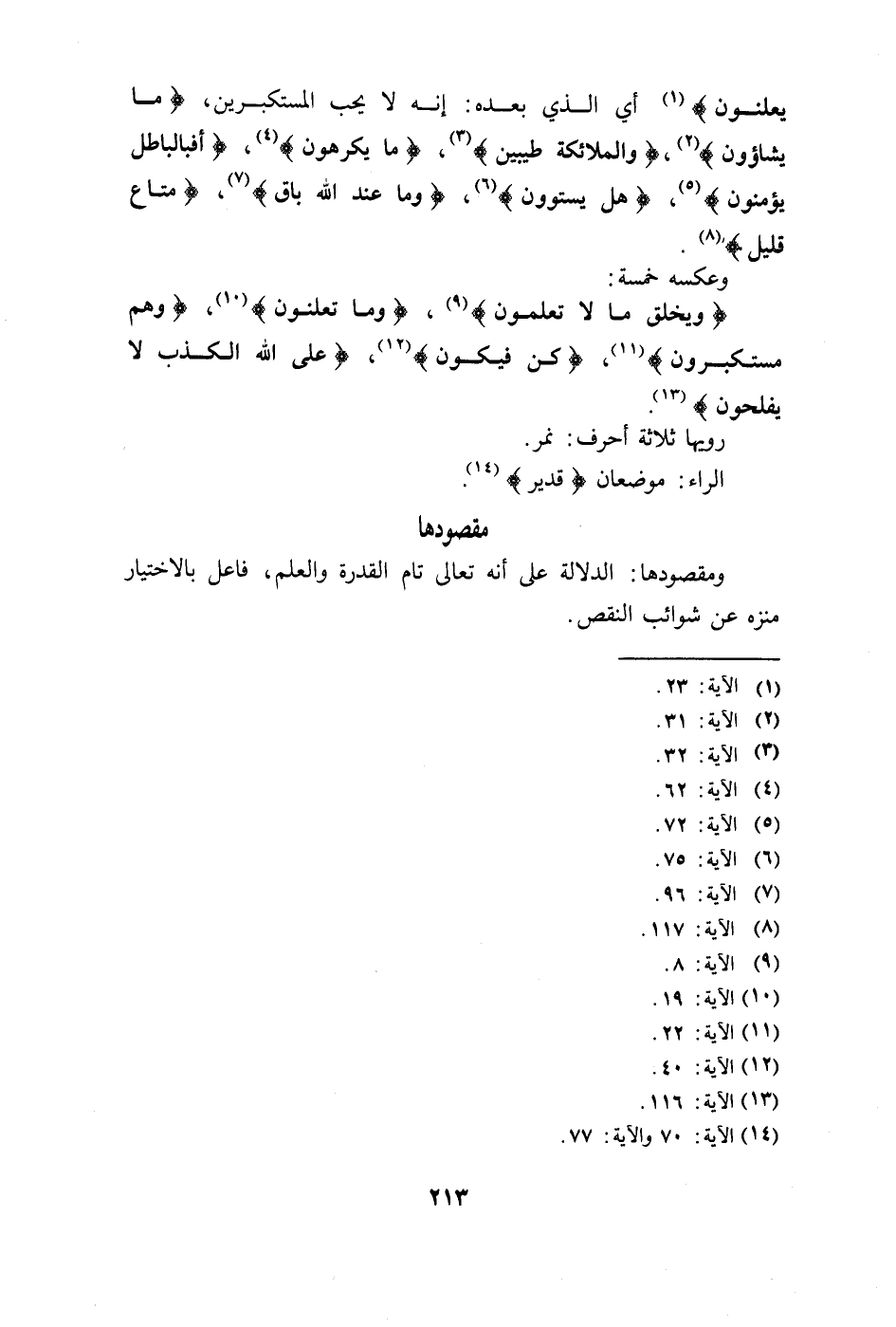 (ويخلق ما لا تعلمون) ، (وما تعلنون) ، (وهم مستكبرون) ، (كن فيكون) ، (على الله الكذب لا يفلحون) .