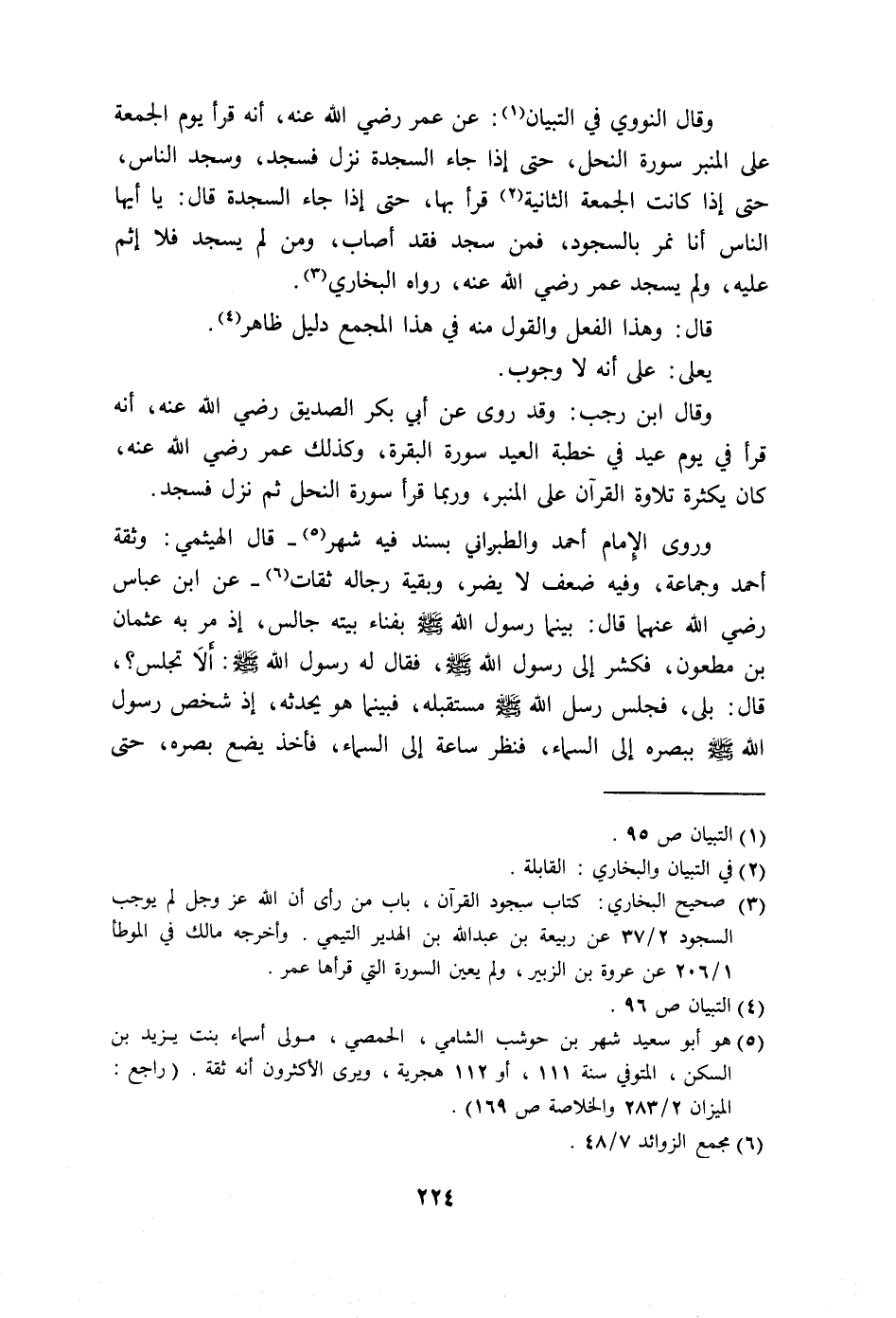 وقال النووي في التبيان: عن عمر رضي الله عنه، أنه قرأ يوم الجمعة