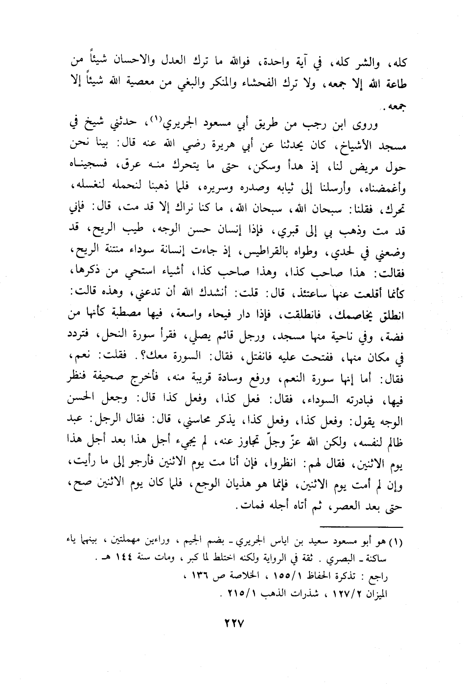 وروى ابن رجب من طريق أبي مسعود الجريري، حدثني شيخ في