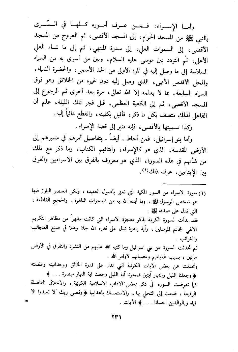 وكذا تسميتها بالأقصى، فإنه مشير إلى قصة الإِسراء.