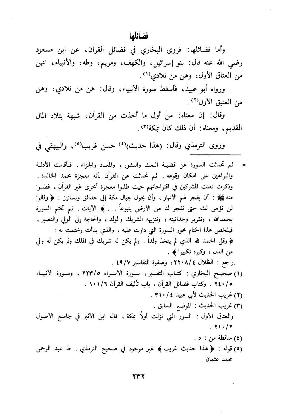 ورواه أبو عبيد، فأسقط سورة الأنبياء، وقال: هن من تلادي، وهن