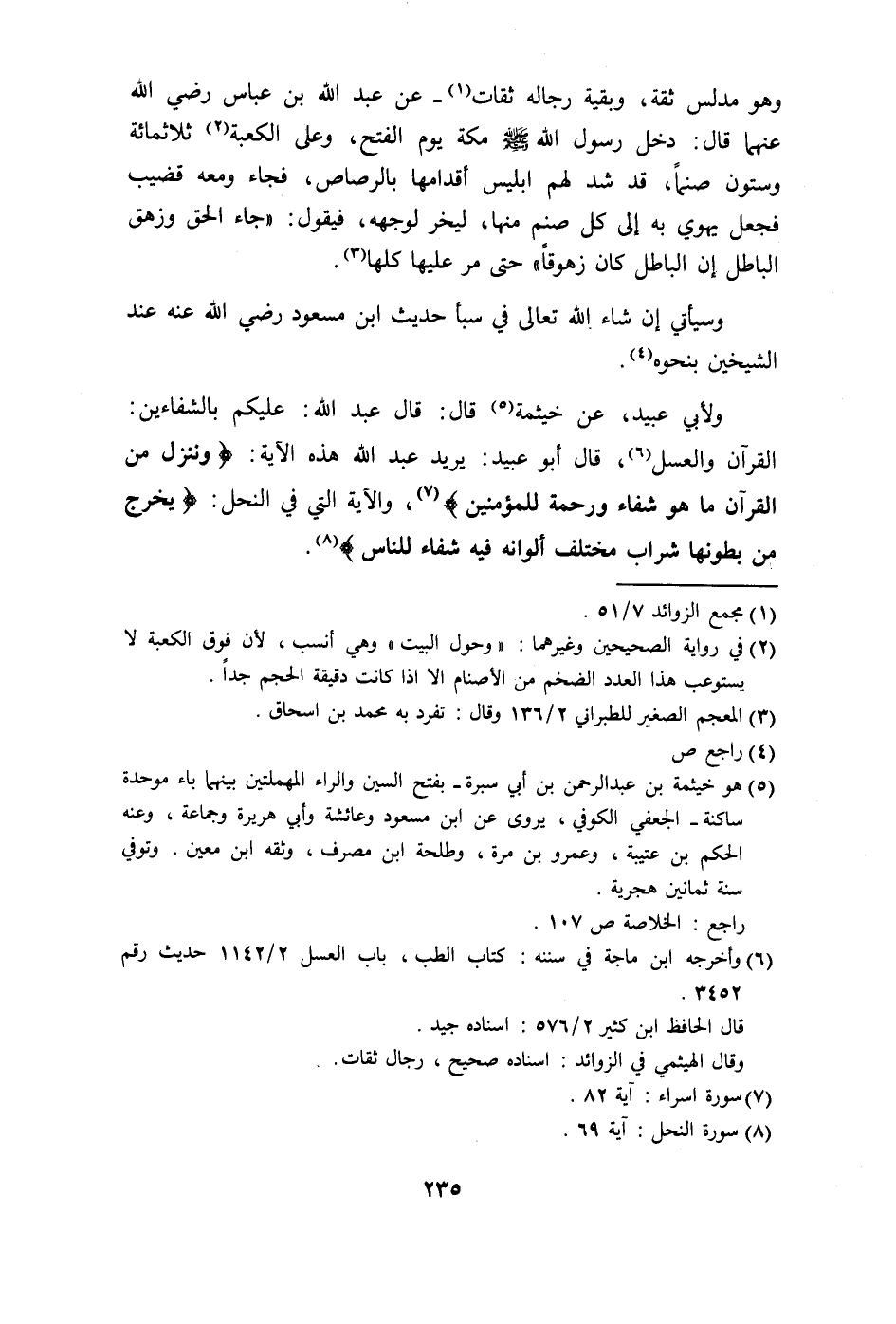 القرآن والعسل، قال أبو عبيد: يريد عبد الله هذه الآية: (وَنُنَزِّلُ مِنَ الْقُرْآنِ مَا هُوَ شِفَاءٌ وَرَحْمَةٌ لِلْمُؤْمِنِينَ) ، والآية التي في النحل: (يَخْرُجُ مِنْ بُطُونِهَا شَرَابٌ مُخْتَلِفٌ أَلْوَانُهُ فِيهِ شِفَاءٌ لِلنَّاسِ) .