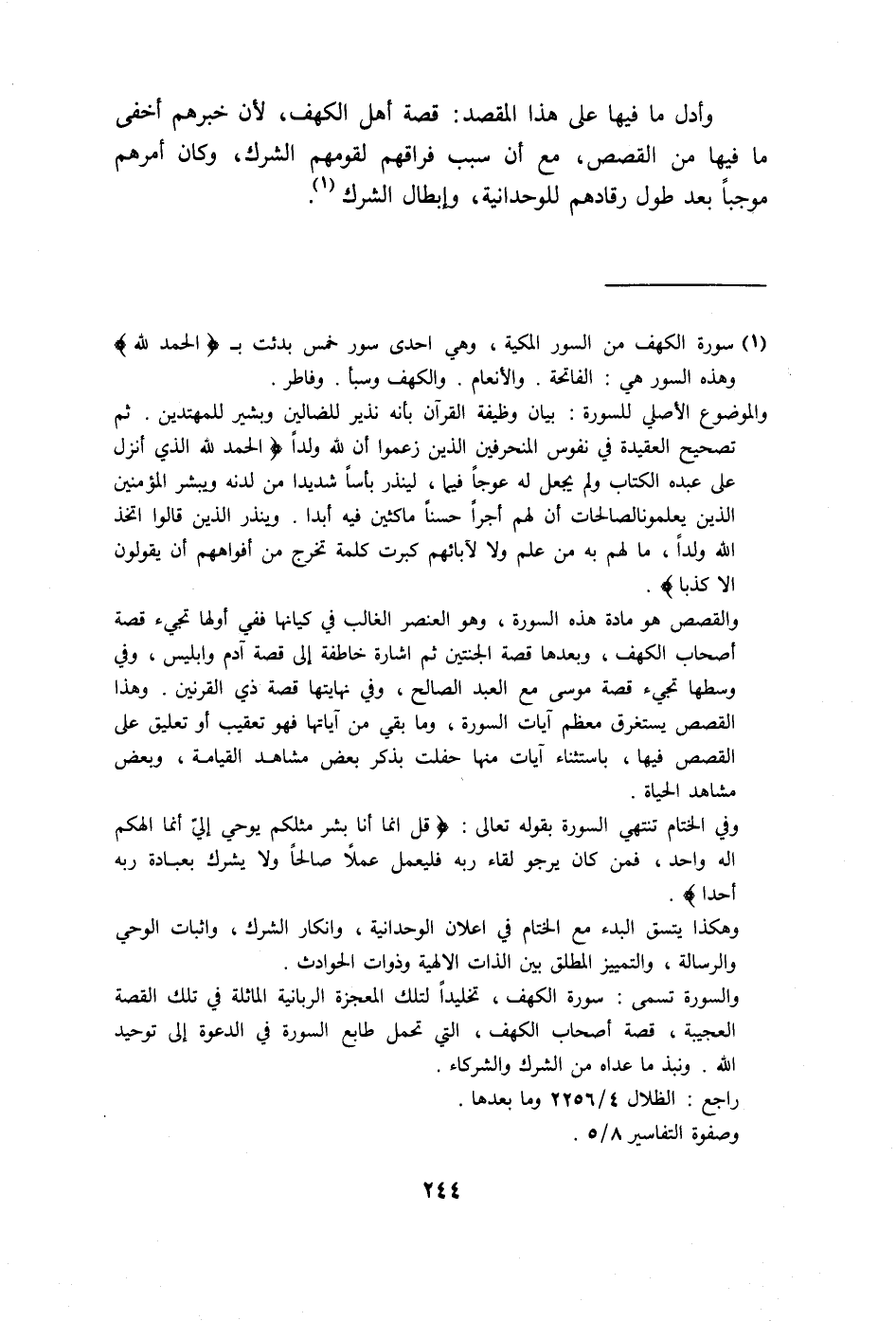 ما فيها من القصص، مع أن سبب فراقهم لقومهم الشرك، وكان أمرهم