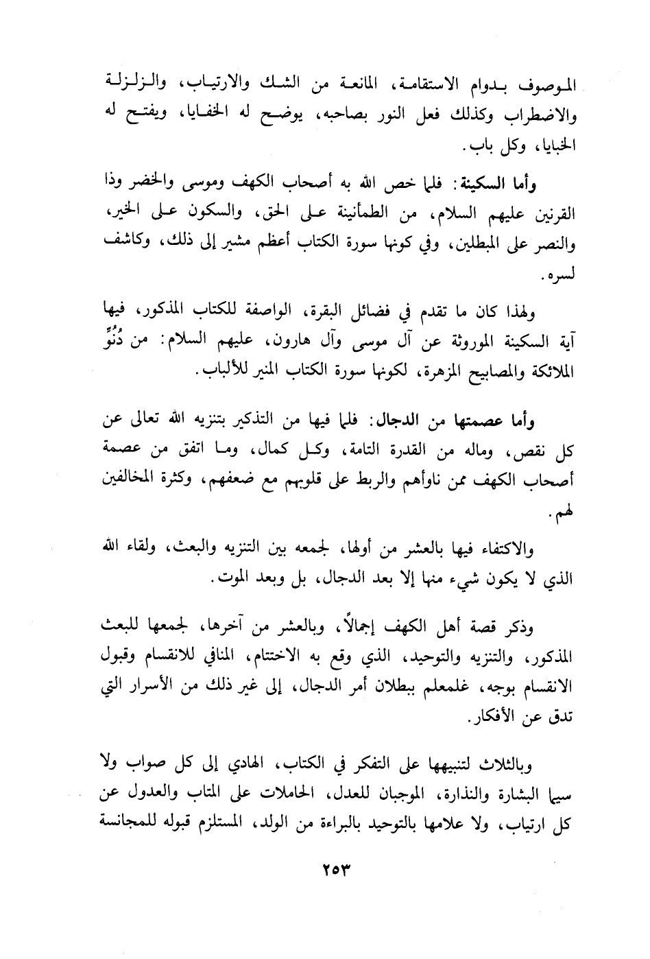وأما السكينة: فلما خص الله به أصحاب الكهف وموسى والخضر وذا