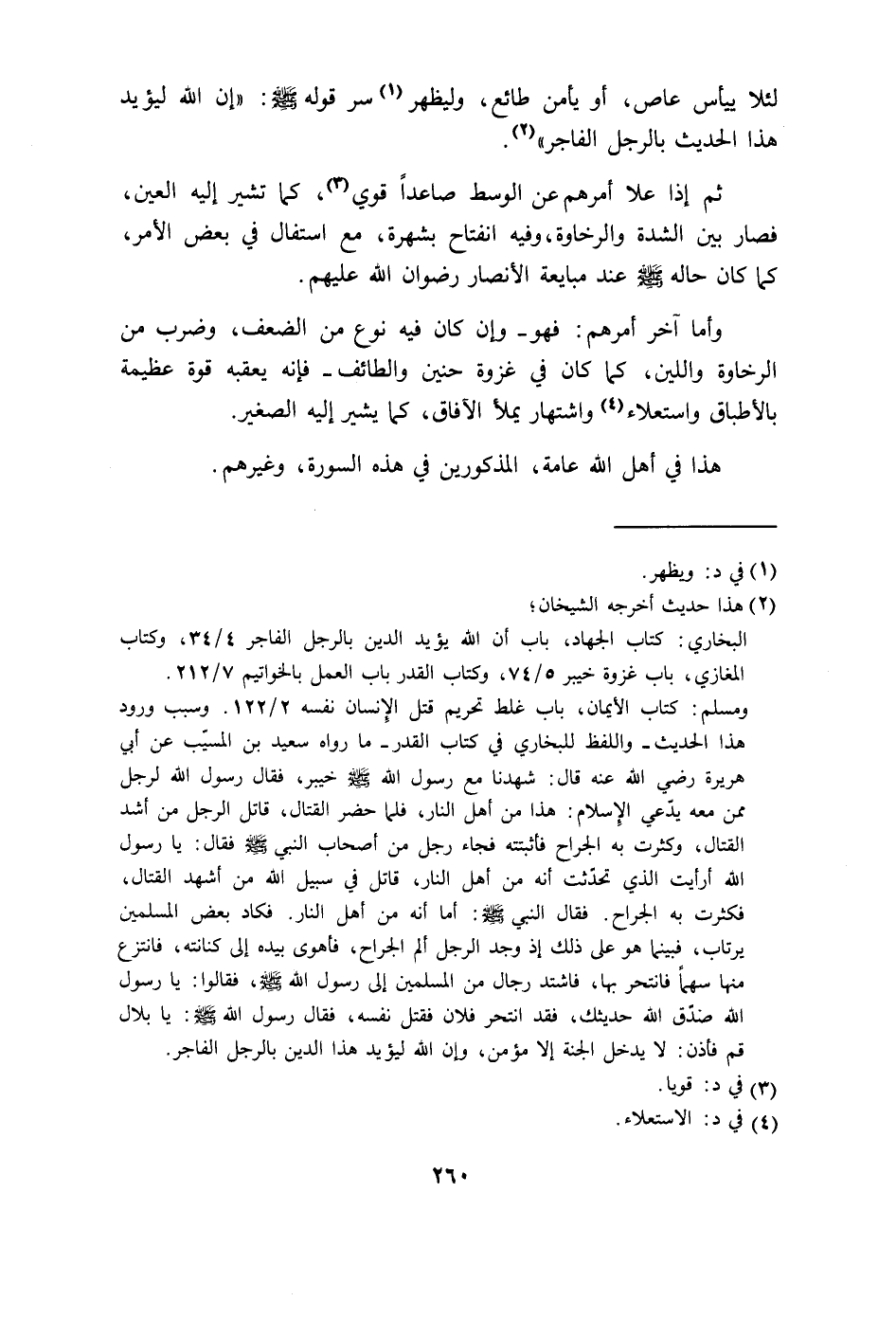 لئلا ييأس عاص، أو يأمن طائع، وليظهر سر قوله - صلى الله عليه وسلم -: ((إن الله ليؤيد هذا الحديث بالرجل الفاجر".
