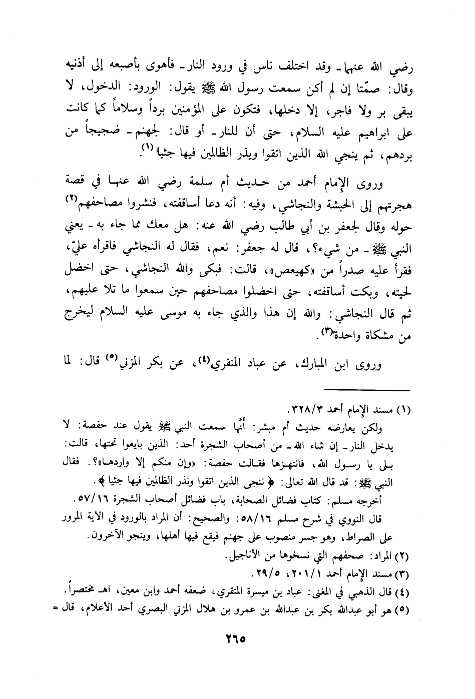 وقال: صمَّتا إن لم أكن سمعت رسول الله - صلى الله عليه وسلم - يقول: الورود: الدخول، لا يبقى بر ولا فاجر، إلا دخلها، فتكون على المؤمنين برداً وسلاماً كما كانت على إبراهيم عليه السلام، حتى إن للنار - أو قال: لجهنم - ضجيجاً من بردهم، ثم ينجي الله الذين اتقوا ويذر الظالمين فيها جثيا.