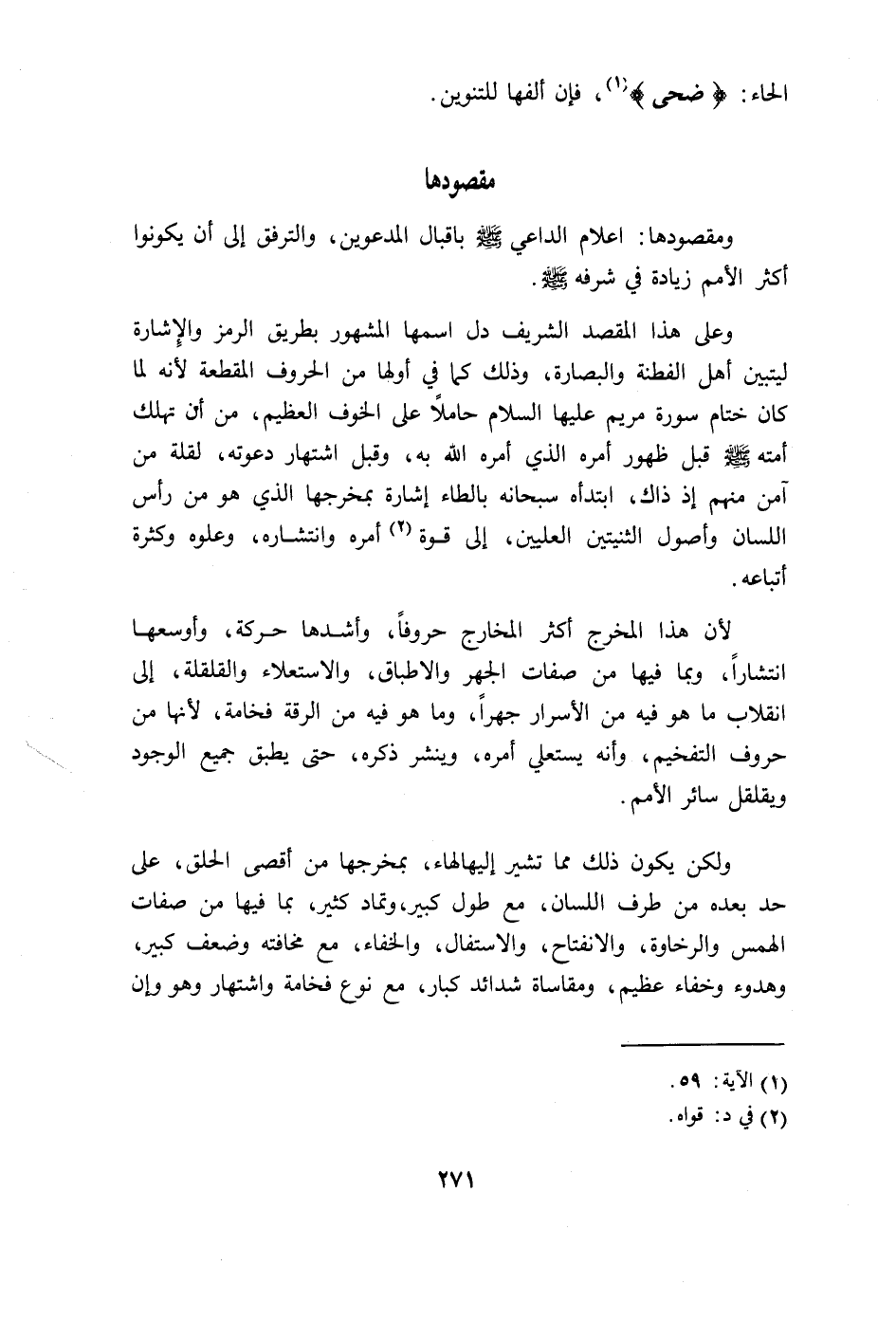 حروف التفخيم، وأنه يستعلي أمره، وينشر ذكره، حتى يطبق جميع الوجود