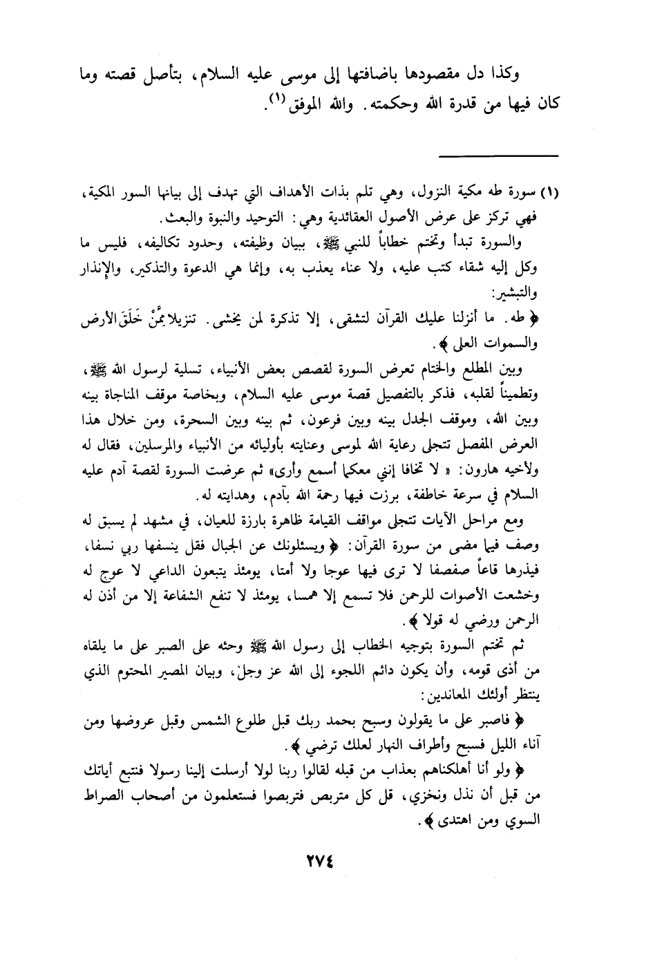 وكذا دل مقصودها بإضافتها إلى موسى عليه السلام، بتأصل قصته وما