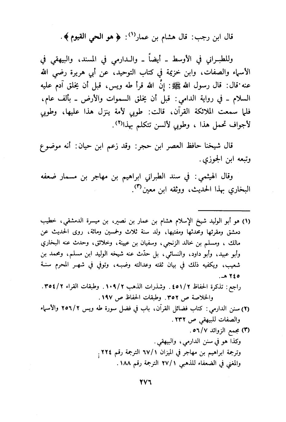 قال ابن رجب: قال هشام بن عمار: (هو الحي القيوم) .