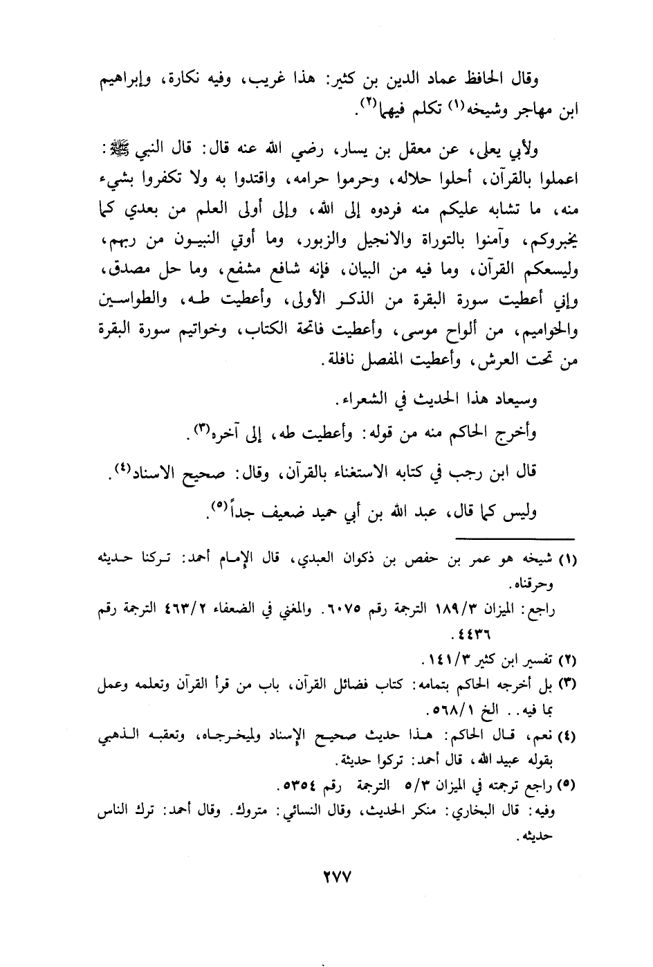 قال ابن رجب في كتابه الاستغناء بالقرآن، وقال: صحيح الإسناد.