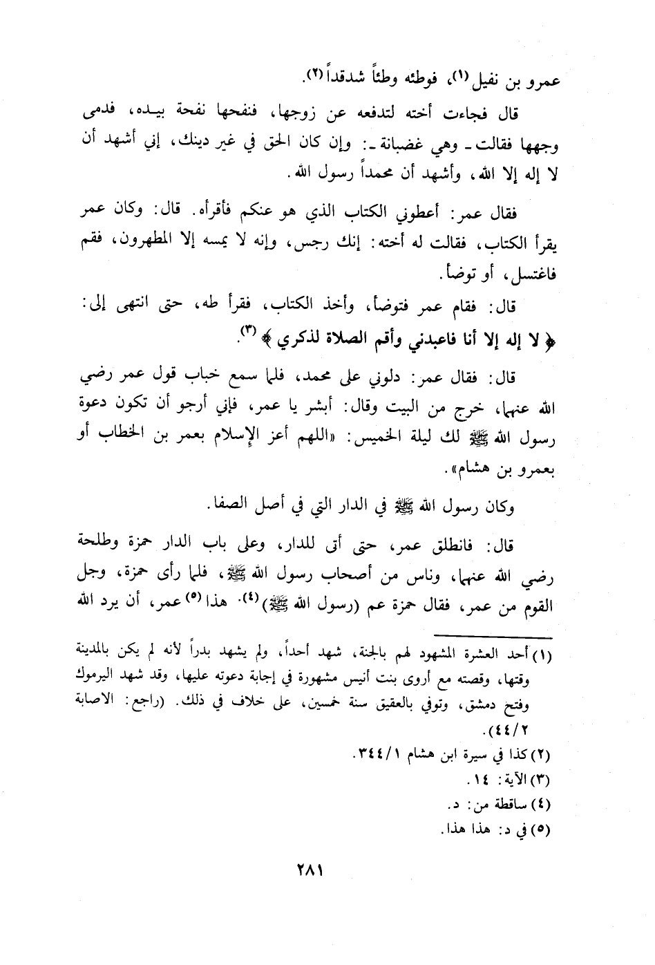 قال: فانطلق عمر، حتى أتى للدار، وعلى باب الدار حمزة وطلحة