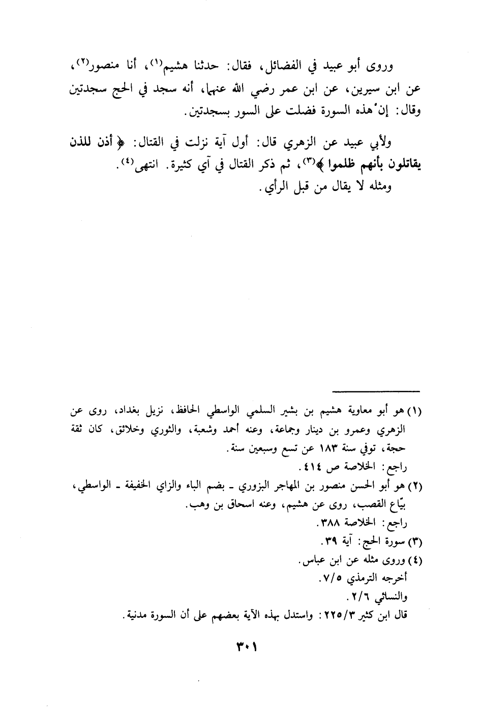 وروى أبو عبيد في الفضائل، فقال: حدثنا هشيم، أنا منصور.