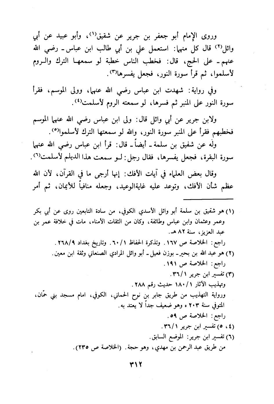 وروى الِإمام أبو جعفر بن جرير عن شقيق، وأبو عبيد عن أبي