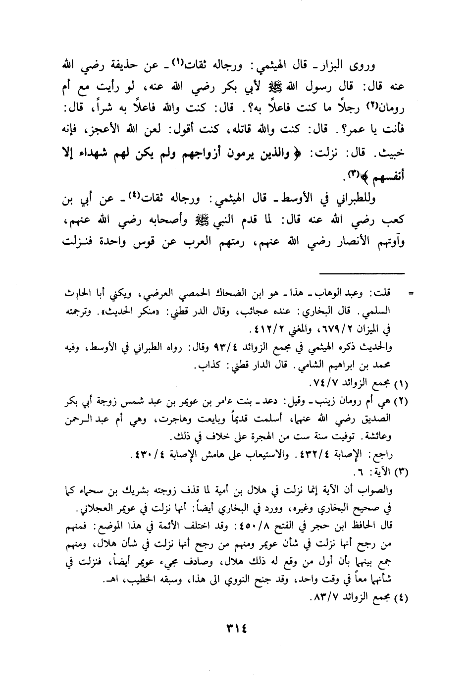 قال: نزلت: (وَالَّذِينَ يَرْمُونَ أَزْوَاجَهُمْ وَلَمْ يَكُنْ لَهُمْ شُهَدَاءُ إِلَّا أَنْفُسُهُمْ) .