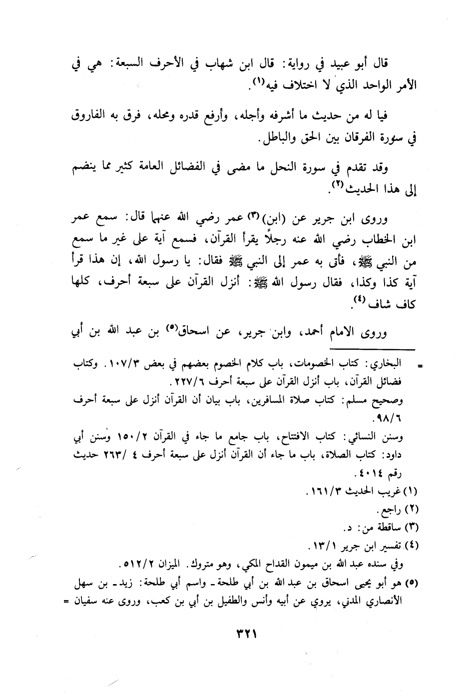 قال أبو عبيد في رواية: قال ابن شهاب في الأحرف السبعة: هي في