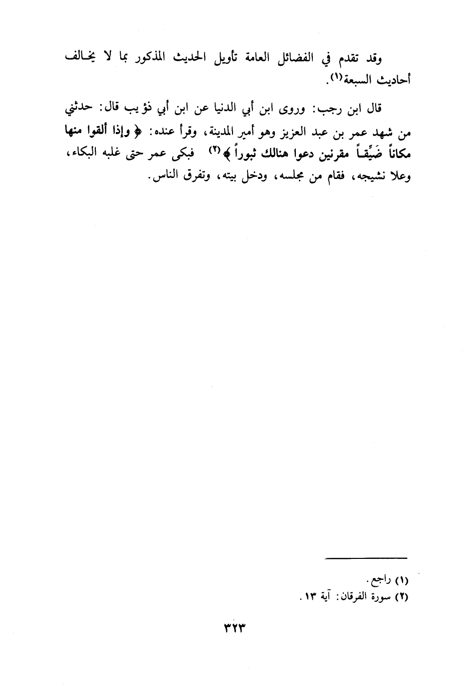قال ابن رجب: وروى ابن أبي الدنيا عن ابن أبي ذؤيب قال: حدثني