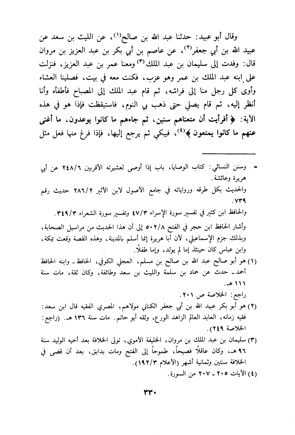 على ابنه عبد الملك بن عمر وهو عزب، فكنت معه في بيت، فصلينا العشاء