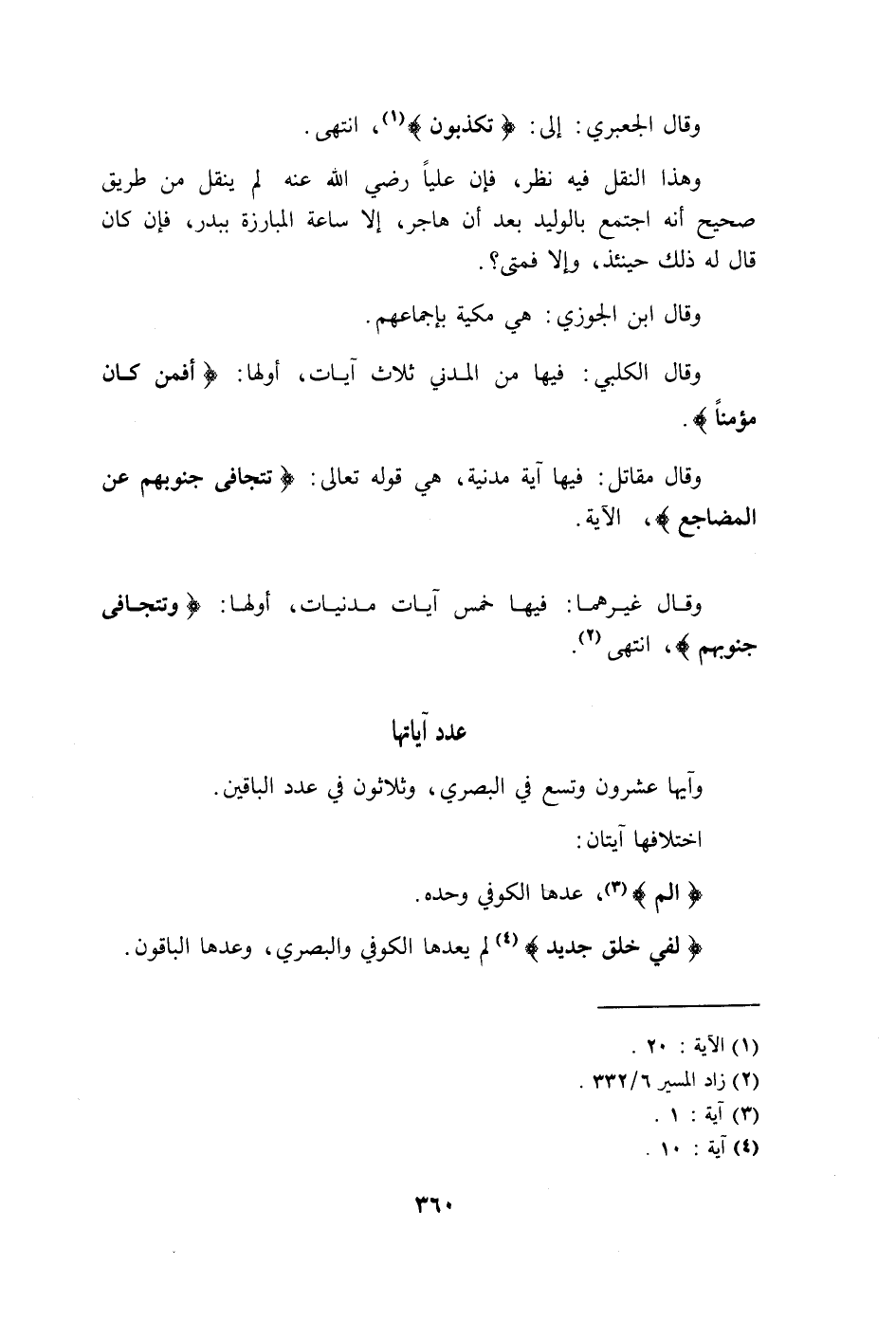 وقال غيرهما: فيها خمس آيات مدنيات، أولها: (تَتَجَافَى جُنُوبُهُمْ عَنِ الْمَضَاجِعِ) انتهى.