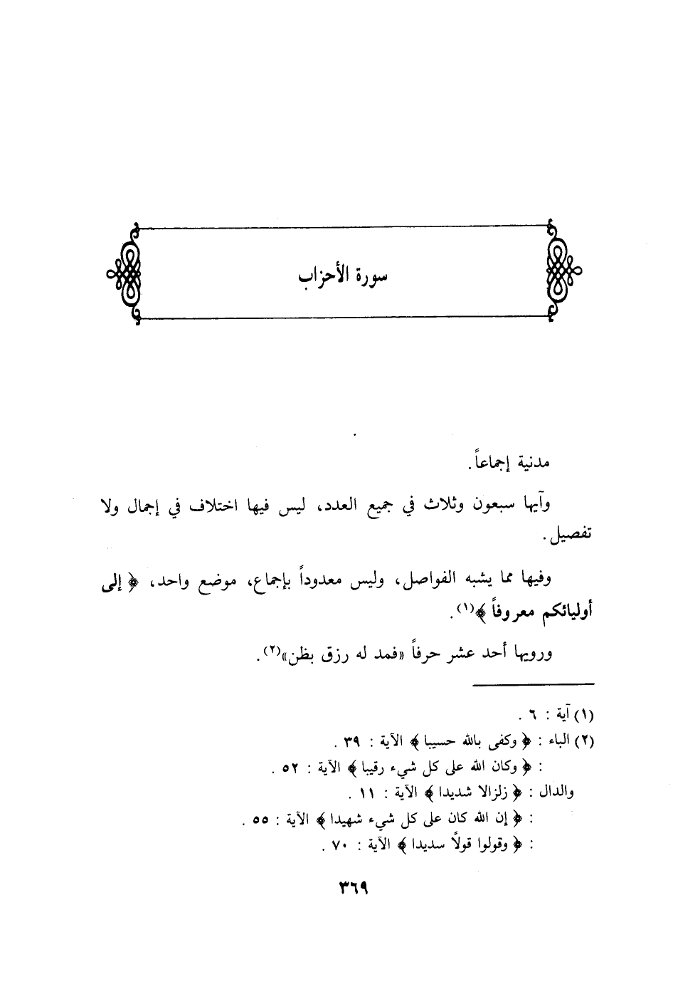 وآيها سبعون وثلاث في جميع العدد، ليس فيها اختلاف في إجمال ولا